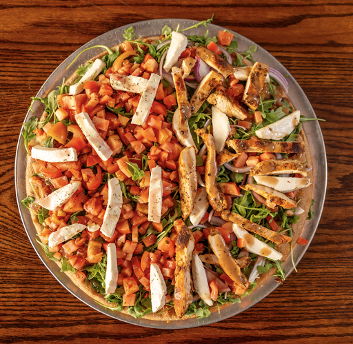 The salad pizza (whole wheat crust, grilled chicken, mozerarella, arugula, roasted red peppers, and balsalmic vinegar) is amazing. Its a must try.
