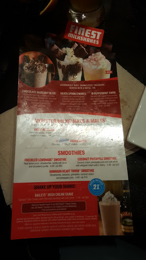 Hidden trick, ask for the Coke Float for one of the best drinks (with free refills) Ive had here. The burgers are fantastic and they have free refills of fries, although they cook their burgers only well here (if youre looking for some pink meats here). You can pay directly through a machine on your table and split checks without waiting for a server which is pretty cool, cant go wrong with Red Robin though!