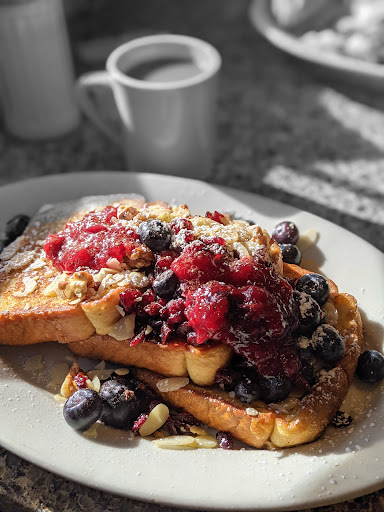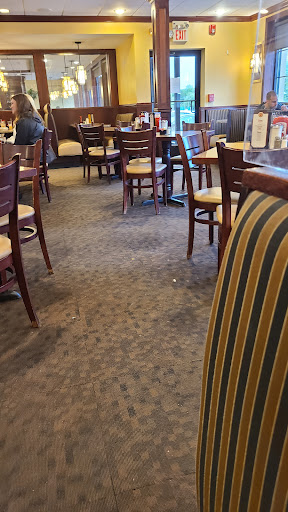 Seating was prompt from the hostess after entering. Server brings 4oz glasses of water at initial table visit. Ordered coffee. It was mediocre. Ordered the Belgian Waffle with 2 over medium eggs. Taste was decent but for $9 it was little food for the cost. My wifes 3rd coffee refill was met with curdled creamer from the disposable single-servings provided. A nearby staffer quickly replaced the bad java and informed us this was a known issue. Hunger unsatisfied, I decide to try the hot corned beef sandwich which was about $9 with no side. Subbed saur kraut for the coleslaw and had it as a wrap because they did not have marbled rye. It was good but soggy. My 4oz water mightve been refilled once during my 2 courses. We declined dessert and were given the check and told to pay at the hostess stand up front. Although the check was itemized on paper, the hostess could not split the check by seat. She unpleasantly informed my wife and I that it could only be split in half. This diner doesnt support the troops.