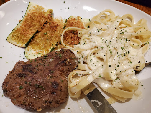 i went with a group of ten to celebrate my sons birthday lets just say that the only thing good about the place is their lemon with tap water and the bread-sticks and salad. our bill came up to $221 and i was completely dissatisfied. i ordered the chicken and shrimp carbonara and the pasta had absolutely no sauce. i got four pieces of shrimp and two miniature pieces of chicken tenders for a $19 meal. My husband ordered the braised brisket and he got 3 tiny medallions on Alfredo pasta and again no sauce. my friends ordered shrimp scampi and it looked like is was the kids portion even though it was dinner time and prices. I am posting a true review because i want the manager to know who I am. I am a dissatisfied customer that had to wait for a hour and pay a $221.06 bill for a p[arty of 10 people and a $44 recommended tip. One thing is that the waitress even though she messed our orders was very pleasant and helpful.