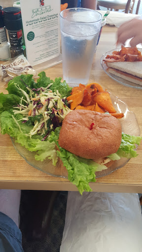 The food was tasty and they had a variety of meat and vegetarian/vegan options. There is nothing specifically marked on the menu as vegan, but many of their sandwiches and wraps are dairy/egg/meat free. Our waitress (middle-aged, bleach blonde) was short-tempered and rude. She simply dropped the food and drinks at the table and disappeared until she brought the check. The other waitresses appeared to be more pleasant. Cash only and fairly pricey for simple sandwiches ($9.50-15).