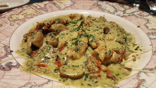 Casual restaurant that offers authentic Italian options (from fresh pastas to soups, steaks). I had the Shrimp fra Diablo (see photo). Spicy Italian plum tomato sauce, still chunky, finished with garlic, basil, and breaded shrimp. Meals are delicious but portions are large. Come hungry! PS: Love the plates decorated with a map of the old world.