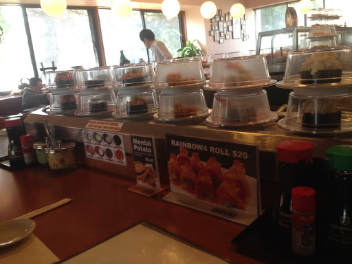 Its a decent neighborhood sushi restaurant that serves generally low price sushi items in a fast food style 80s novelty conveyor belt system. I dont know this for a fact but they dont seem to stock their fish daily, which is why they have weekly specials pushing salmon every Wednesday for example. This implies that depending on what day of the week you go, you will find sushi fresher than other days. So depending on what I see, I would sometimes go for more vegetable or shellfish type sushi, or even go for cooked items. Another factor that affects food quality is how long the piece of fish has been sitting on the belt. Good thing is, they do throw the fish out after a certain amount of time, but you might unknowingly grab a plate of sushi thats on the verge... so in general, look for discoloration, its generally a good way to tell freshness. You can also order what ever you see straight from the sushi bar, same price and it usually tastes fresher. If you take note of how this place operates, you will have no problem finding this place convenient and enjoyable.