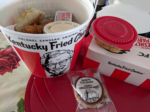 I went around 10pm on Saturday night. I ordered a bucket chicken and I can tell from the look of it it was overcooked darker and dryer than the fresh orange hue crisp KFC chicken I have eaten in other KFC around the country. I had to throw away the bucket and I am writing a review on KFC website with pictures of the chicken served. As a father with kids, I am busy to write review for fast food restaurant but this incident has compelled me to....this place is not the real KFC. ...avoid it.