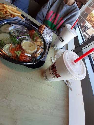 Friendly employees. Here first time, Saturday is busy. Burgers are grilled and made to order. Very tasty. Veggie burgers, chicken fish steak sandwich as well. I dont know, but speaking to some patrons was told perks not good. Ill let you know in the future.