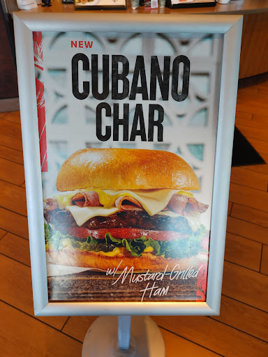 Had a BBQ Bacon Char with fries and a drink for lunch. Fair price, and good quality food. The fries were nice and salty, and the burger wasnt overcooked. They have indoor and outdoor seating. It is cool, especially for kids, to sit outside and watch the airplanes land at Teterboro. It isnt as loud as youd expect. Service was with a smile, and although it was busy, the line moved and I got my food in about 7 minutes.