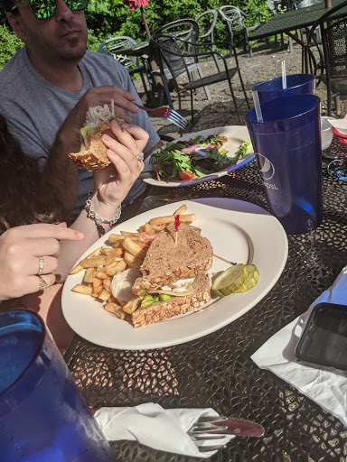 First time having breakfast. It was perfect -- tasty and good size portion. . Spinach, Artichoke & Feta Omelet with home fries. My friend had a turkey sandwich with various add-ons. He loved that it was fresh carved turkey not processed. It was delicious for him. Friendly and efficient wait staff. I have enjoyed lunch there many times. Fantastic inventive sandwiches as well as really well prepared old standbys. Awesome fried chicken, very crispy outside and moist inside. Seating is unique: colorful picnic tables outside, air conditioned area inside and a covered patio area not air conditioned but with a nice decor and ambiance of greenery surrounding the patio. Any attire is okay including cycling wear (bicycles) and motorcycles along with family casual. Strongly recommend this unique restaurant.