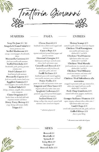 Giovannis trattoria is one of a kind, Giovanni is an excellent chef and a one of a kind guy .Happy Birthday Giovanni! !