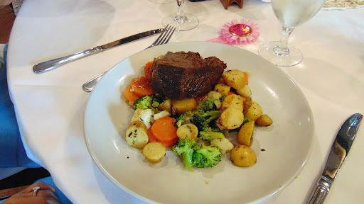 I should have realized with the dismissive service from the receptionist that this was going to be a disaster. It was. We were shown through the expansive restaurant to a desolate room at the back of the building; granted the space gradually began to fill up over time. The white wine we ordered was warm as was the replacement from a new bottle from the freezer. The food was mediocre; Chicken Marsala consisted of 2 chicken pieces smothered in a glutinous sauce and a huge pile of potatoes. The salmon didnt appear very fresh and was lying on another similar sauce. Sunday was a wasted day, spent in bed with food poisoning. Overheard at the next table the service was great but the food was awful