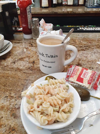 Delicious fresh food, friendly staff, small bar area. Recently remodeled. I grew up in Union and Mark Twain diner was the place to go for great breakfasts and delicious hamburgers and late night munchies. They have only gotten better through the decades offering a extensive menu from the usual diner fare to full course dinners. Consistently delicious fresh meals. Their soups are the best, especially the chicken escarole served on Mondays. Ordered the chicken rice yesterday and it had large pieces of chicken in it, could have been a meal in itself but this is included with the order of a hamburger. The burger was charbroiled, juicy and cooked perfectly to order. At the time of this posting the hamburger along with pasta salad and bowl of chicken soup included has a menu piece of $6.99. Thats pretty incredible.