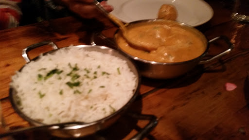 First off, Id like to make it clear that Ive never tried Indian food before so I have nothing to compare it to nor would I be able to judge is authenticity... That being said, I absolutely love this spot. Its rather small, but theres still adequate enough space between tables to feel comfortable. The dining room is dimly lit and provides for a very relaxed and intimate dining experience. A good setting to take a girl out on a date or meet up with a few friends for a nice dinner. The service was great with my server being very attentive and not being bothered by my obvious cluelessness as to what curry is and what comes with each meal. I ordered a Methi Salmon dish which came with white rice, a curry sauce, and naan (which is a toss of bread). The Salmon was amazing! Cooked to perfection and came served on a sizzler. The naan and curry were also excellent and a perfect compliment to my fish and the white rice was freaking awesome (Im the type of guy that can eat white rice by itself, so trust me its good). Overall I thoroughly enjoyed every aspect of my visit here and can definitely recommend anyone curious about Indian food to come here...