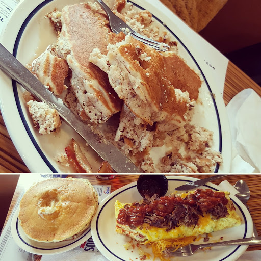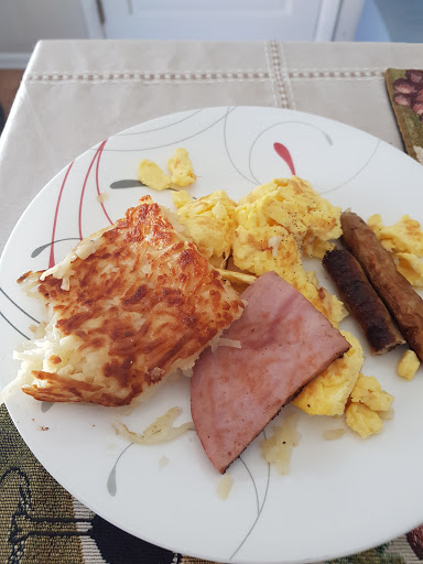Food was good, but i felt a bit rushed. My girlfriend and i came here for breakfast and this was my first experience here. Not even half way through our food out waitress hands us the bill. The bill was printed for 9:40am and we left at 9:54am. In those 14 minutes our waitress never came back to check on us. On top of it all i asked for one cup of coffee, she brings back a cup, and as im mixing my coffee proceeds to tell me that she has to charge me for a pot of coffee for one cup. As we where leaving the landscape around the front of the building near the front door, and yes i mean this litteraly, it smelt like garbage. I will return in the future so i can hopefully see thay they have read this and can improve them selfs. Till than i bid you a good bye.