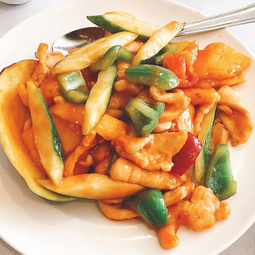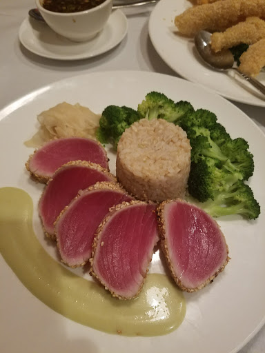 Perfect spring rolls, light and crispy, with spicy mustard and duck sauce. Excellsnt scallops and asparagus and a huge portion. I asked if it could be made a little spicy ascend waitress came out with chili sauce. Spjcy Thai chicken with vegetables was delicious and portion was very large. Apple tart dessert and Bomba ice cream were so good. All items were priced reasonably.
