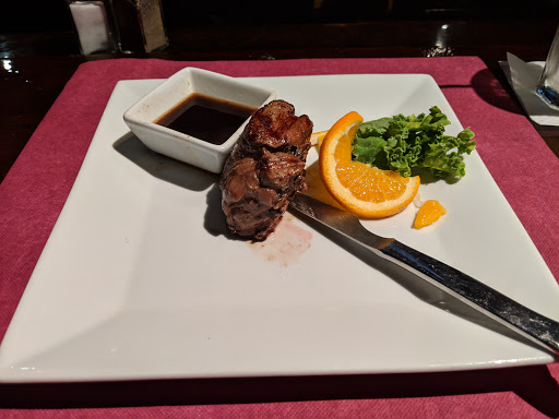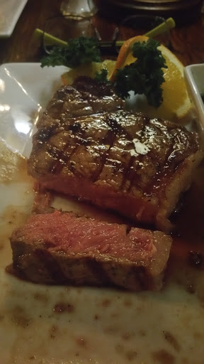 STEAK... BACON... SALAD... SCALLOPS... DESSERT...AMAZING! Portions are overwhelming and you will take some home with you if you are a normal person. I had the filet tips for the second time which are served with a mushroom sauce that is a little on the salty side, but creamy and adds a whole other layer to the perfectly trimmed and cooked steak! Here are the must try items list (other than steak of course): Crab cake, bacon wrapped scallops, and garlic mashed potatoes. I wasnt a fan of the NY Cheesecake because it just didnt have much flavor. But the Key Lime pie was just right, not too tart. And the Peanut Butter Blitz is very rich and sticks to the roof of your mouth like you expect it too. Do bring a flashlight or use your phone because the place is so dark you cant see what youre cutting in to and barely the person in front of you.