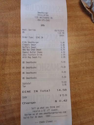The cooks are arguing with the customers. The place is dirty and disorganized. Worse Smashed Burger I have been to.
