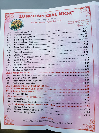 Best Chinese food in the area! The staff is great and very accommodating for special orders. The only reason there are not 5 stars is that the cooks do not wear hats so their hair can get in the food.
