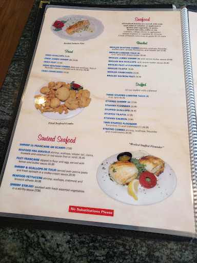 Had broiled stuffed flounder senior menu dinner for $13. Soup looked right out of can. Very salty. Salad iceberg lettuce was ENTIRELY brown and yellow. Grape tomatoes and chunks of cauliflower were good. Fish and stuffing very good. Mashed potatoes good. Beets tasted tainted. Bread pudding awesome. Waitress super nice and efficient.