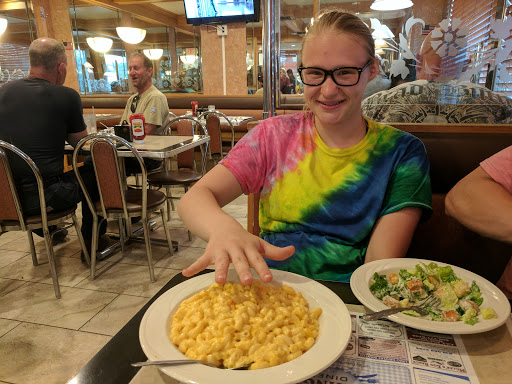 Just stopped here for lunch around noon. Its got the typical retro diner theme. It was a nice place id say. I gave it 4 stars because the food was pretty good, good pricing, and I thought a fairly attractive crew of servers. It seemed like they were all limping though. Anyway, the con, well the booth we sat at was kind of small for my 6 foot 3 self. Lastly, somebody did mention dirt on their plate. I did notice that our plates had a few dings that could be confused for dirt. But we were all dirt free.