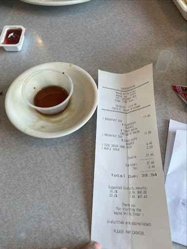 Ive been to numerous diners in North Jersey and this one was easily the WORST. Service was slow and our waitress never even got around to answering quite a number of our requests (for Tabasco sauce, etc). We were with a large party and most of what everyone got tasted terrible - pancakes tasted like sponge, the meatballs that came with the spaghetti tasted like sand. I usually never complain about food but those were really the worst pancakes that I had ever had in my life. My whole table was complaining about the food. I would not recommend this diner to anyone, EVER.