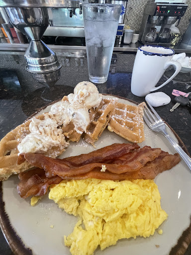 Its a cozy little diner on the main road. The ambiance is charming, and the food is delicious. The wait staff is always able to us, and are always pleasant. Ive never had a bad meal or service when dining here.