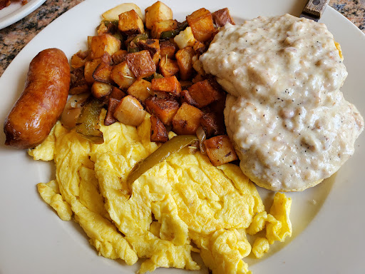 Recently had breakfast here and the food was good. However, during the course of our meal , in fact while I had my fork lifted to my mouth, the owner asked us to get up so he could move our table a few feet back to accommodate a table he was setting up for a large group. His exact words where " so you cant get out of the way". Pretty gracious , huh? The saving grace was our waitress who acknowledged our inconvenience and apologized. When we were leaving, the owner was texting. He didnt even look up to say anything. We will not be back.