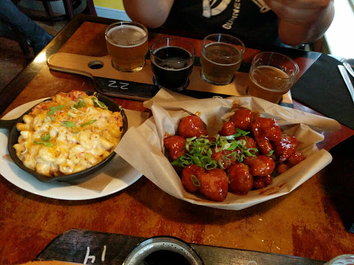My wife and I have been in for dinner a few times. The atmosphere is fun, the beer selection is very good, and the food has been just OK. We went for dinner last night ( Monday) and we were more disappointed. Knowing the food is not great... we both picked out a burger, which is pretty good, not as badly overpriced as some other things. I also noticed a sign on the table announcing a Monday special on a "flight of beer". 4 five ounce samples of " any of the 20 tap beers". I picked out 4 that my wife and I wanted to try. The waiter came for our order and when we started to order our burgers he informed us they were out of burgers.( Wow!) I then tried to order the beers, and the waiter told me that they had some special beers on tap that night and therefore i couldnt order 11 of the choices on the list. When asked why the sign on the table said otherwise... he said thats what he was told. He said he would send over the manager. I chose different food, and beers, and ordered. The manager came over and just repeated what the waiter had said, and would not answer why they left the sign on the table stating something that wasnt true. No apologies. Our food was coming, so he said he would talk with us later. The only time he said anything more, was when we were leaving. He said good night. To sum up the night... food- OK beer- good waiter- OK false advertising on table ad for beer special -not acceptable manage-r not good! Disappointing experience!