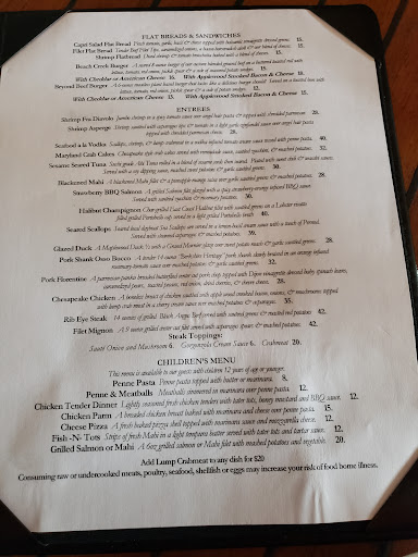 Although we were told the wait time would be 60 -75 minutes (actual wait time was only 45 minutes) My hubby and I decided to wait since they have a lovely back deck overlooking the water and we were able to order drinks and appys (they had table service out there) while waiting for our table inside. The food was amazing. Outside we had the tempura battered Asparagus Spears fresh, tender, lightly battered with a dipping sauce. Our appy inside was the tempura battered MAHI MAHI FINGERS, served with a dipping sauce..... out of this world! My hubby got a chicken dish with mushrooms in a cream sauce served with garlic mashed potatoes with Applewood smoked bacon and asparagus. He raved over it. I got the crab cakes. They were delicious, served with garlic mashed potatoes and summer squash. We were too full from our dinner to order dessert the dessert menu looked delicious. We will definitely come here again on our next trip to Wildwood.