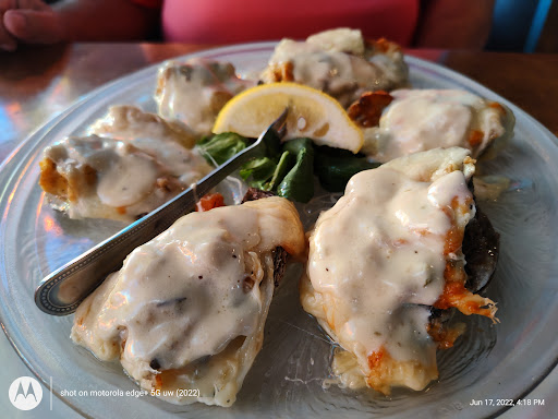 went here the second night while i stayed in wildwood based off a friends reccomendation and it was great. I sat on the deck portion, weather was great and the server was really friendly and good at her job. The bread was served with tomato bruschetta and was super delicious. I also had the clam and oyster sampler and the shellfish as so fresh and tasty and could have and another dozen order. They were very clean, nicely shucked, served with cocktail sauce, lemon wedges, and mignonette sauce . for an entree i had the thai seared scallops with a green papaya and green bean salad with toasted peanuts and it was really tasty, although i thought i would have been spicier. scallops had a nice seared on them and not over cooked, and super sweet . My friend had the panko crusted soft shell crab with sauteed spinach and mashed sweet potatoes and he said it was deliciuos as well, very fresh tasting, not greasy and the spinach had lots of garlic . would highly recommend this restaurant for a visist