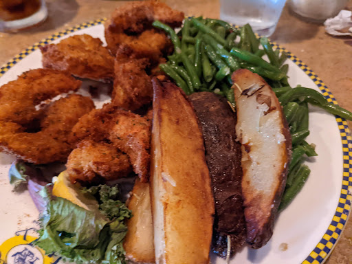 Waitress was very nice. Salad was good. Main entree was mediocre at best. I got the grilled chicken with baked potato and vegetables as a side. The chicken was extremely thin. It wasnt dry but it lacked any flavor. The potato and vegetables you could tell came from a freezer. Its a shame wildwood doesnt have any good restaurants any more.