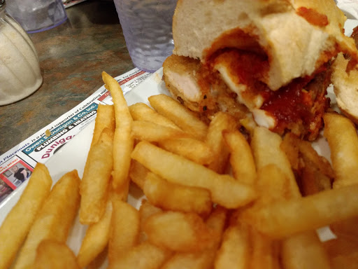 History, Corned Beef Hash, Fried Food, and a few missteps. This is a historical diner with excellent diner food for the money. It was renovated a couple years ago and the atmosphere was great. The corned beef hash is delicious and anything fried is served hot and perfect. Their "fat" sandwiches are worth checking out. I ordered a Fat Linda with chicken tenders and mozzarella sticks. It was hot, fried, and exactly what I needed at 10pm. That being said, diner menus are notoriously long and everything on it isnt roses and sunshine. Id recommend this place to a friend, but consider the following negatives for objectivitys sake and to avoid my mistakes. The nachos werent great, as the chip-to-topping ratio was off and the bacon/ground beef topping was weird. The sour cream and guacamole were far from fresh. I tried the Penne with vodka and it was sad. The pasta was overcooked and the sauce was bland. Id go here for the typical diner fare like pancakes, fried food, and corned beef hash as, like with most diners, the average dish is seemingly but an afterthought.