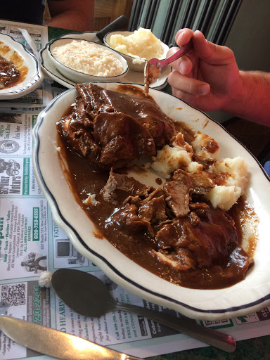 I got the "chefs special", there were five of them. I chose the pork loin. For $13 it came with a lot if food so I was excited. Soup was great, had the cream of mushroom. Salad was fine. Then came the entree. They brought me two giant slabs of pork split by congealed stuffing. It was smothered in brown gravy that tasted too sweet and bitter. The pork sucked all the saliva out of my mouth. Gravy did little to help. My sides were lima beans and mashed potatoes. Lima beans were boiled too long with no taste to them and the mashed potatoes were bland as well. It is suppose to come with desert, but I declined it. I was done. Horrible food, I wont be back.