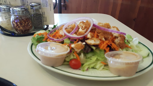 The food was fresh, tasty, excellent and very reasonably priced. The chicken strips got a "10". Very fast, friendly, professional service. The atmosphere was beautiful and sparkling clean and since it was a very hot day, the restaurant was cooled very well. The service was great. The tables are a little close together so not a lot of privacy for an intimate dinner, but then you can always choose to go outside to the patio :). I would like to see more of a variety of salad greens on the menu since I was served Iceberg lettuce and not a great salad green choice for a true "salad lover".