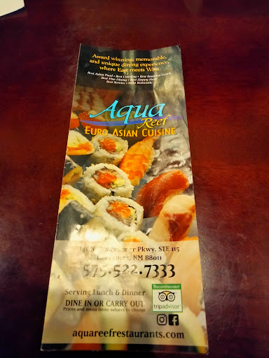 Good sushi is hard to find in Las Cruces so I will be as specific as I can in case you are on the hunt for something not too disappointing. 1) Presentation: In sushi, presentation is everything. I ordered to go so I understand that has its challenges, but most sushi places can swing it ok. I recieved my roll basically dropped into a Styrofoam to go box. There was no ginger or wasabi in the box and the slices were all over the place. No chopsticks or soy sauce were included or offered. 2) They have fortune cookies! This a BIG RED FLAG when you are scouting a for Japanese food. 3) The food . . . Here is where I really hope they read their own reviews . . . USE CHILLED RICE! I ordered a Volcano Roll. It is typically served warm (and smothered in spicy sauce, but again presentation issues), but it is prepared with chilled rice so that the rice doesnt become too soggy. The roll itself was very tasty, but greatly diminished by the experience. Aqua Reef, if you are reading this: chill your rice amd have someone QB togo orders (oh and lose the fortune cookies). Since we are in Las Cruces, and their sushi didnt taste bad or make me sick, I will probably be back but not beforw I try a few more options.