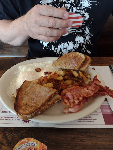 Wish you could select "0" stars. The food is only OK, the service depends on the waitress that you get. However, the price was absolutely ridiculous. We got charged $7.77 for a side of bacon, sausage and ham. This only included two small pieces of bacon, two small pieces of sausage and a small piece of ham. When we received our bill, we were floored. The side dishes cost twice the amount of our meal. For the amount of money that it cost us to eat there, we couldve gone to the Olive Garden and had a feast. At least the food, service and cleanliness would have been better and worth the price. Will NEVER eat there again.