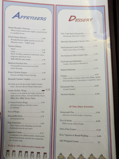 I wish I could put zero stars. This is, without a doubt, the worst diner I have ever been to. The entire time we were there, at least 8 flies were buzzing around our table at any given time. We waited over 15 minutes for our waitress to get us four waters, three of which had flies in it. Excited for the homemade soups they advertised, we asked what soup they had today, to which her reply was "Nothing any good." When our food came, a $9 order of buffalo chicken fingers only came with 3 small strips. Diners are usually known for their large portion sizes, but this place was the opposite. Dont make the mistake of trying this place, you will be disgusted and disappointed.