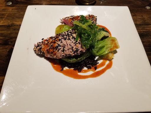 Came here with a lunch Groupon and had an excellent experience! Not too busy on a Friday afternoon. We ordered Crispy Panko Sesame Soft Shell Crab and Sesame Ahi Tuna with Bok Choy, both served over forbidden black rice. The food was plated really nicely and very enjoyable to eat. The tuna was nice and rare as desired. Lou was our friendly server and we were also greeted by the owner Connie. She told us all about the live music they have on the weekend, looking forward to returning for a fun evening.