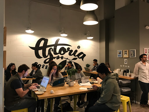 This is a casual, quant, small coffee shop in the heart of Astoria. There is limited seating. Very good wifi speeds, and great coffee and tea.