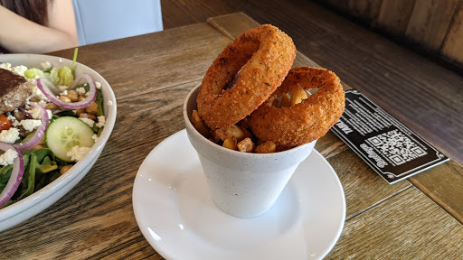 Bareburger offers great food, courteous staff, and good portions. I have tried multiple items on the menu and have yet to be disappointed. I have been dined here for Brunch, Lunch, and Dinner, (not all in the same day). Their burgers are great,, I love the Bison & insist on ordering it every time, though all their meat options are delicious. Their salads are great and their fries and onion rings are a nice treat without being too heavy. Their milkshakes are tasty, my favorite being the Chocolate Banana. Their fresh brewed Raspberry Iced Tea is a sweet low calorie alternative. Their brunch menu is a must try as well. The brunch options are all great and the price cannot be beat! Whether dining in or out the food never fails, but the restaurant itself is a cute cozy space which is a living testament to how Bareburger operates. The bathroom itself offers a lesson on maintaining the environment, which I find very interesting and is part of why I enjoy Bareburger. Down to the smallest detail such as the packaging of the food, when you order out, which is environmentally safe packaging, shows how Bareburger cares for their surrounding environment and their customers. Overall Bareburger is a favorite of mine and is definitely worth a try!