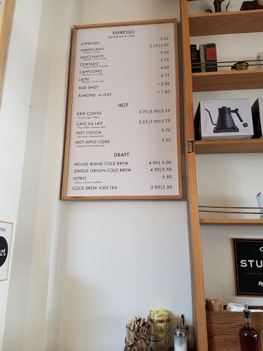 Nice decor and feel. The staff was nice and polite. Seating is okay, theres only one power outlet so its not the best for doing work. No restroom either. I paid $5 for a cappuccino with almond milk... Definitely on the pricey side and Ive had better cappuccino for much less.