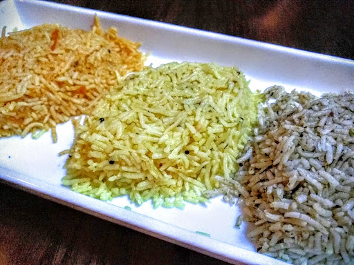 Top-notch service in a relaxed but upscale setting of low lights, circular doorways and light background music. We started with a side of garlicky naan and fried, shredded okra. The tinda masala (apple gourd with spices) was especially flavourful. The meals do not include rice, so choose from plain to flavoured with mint, lemon or tomato. I recommend the basic basmati.