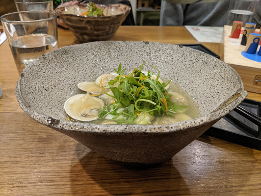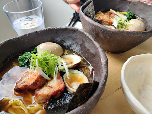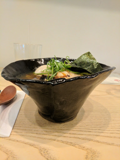 Love the chefs aesthetic and attitude. Hes almost a one-man show, producing some of the ceramic ware for his dishes. He always comes out to greet my table, and its not too busy here. Have seen Japanese guests at the store. There is definitely room for improvement, but this is my favorite wavy ramen in the city right now. Desserts and tea/coffee drinks are also awesome here. The atmosphere is great for designers.