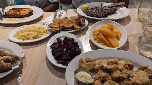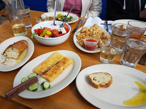 It will be a long wait before you can eat some seriously delicious seafood here but be patient. It is totally worth it. They even gave out free white wine for the patrons waiting outside. We were here for Saturday lunch and we waited for half an hour. There were a lot of people waiting outside too. The restaurant is full of families enjoying traditional Greek food. The free house bread is worth noted. It is a nice loaf of warm olive bread dipped in olive oil. We started with their grilled octopus and Greek Salad. I love how the octopus is tender, charcoaled and lightly seasoned. The Greek salad is big enough to feed for of us with a huge Feta cheese on top. I got the grilled calamari as my entree and a side of lemon potato. The grilled calamari is one huge plate. I couldnt even finish it. My husband tried their Kyclades Specialty, which is a big plate of Tilapia fillet, lobster tail, sea scallops, shrimp, etc. It is $37 but it has tons of fresh seafood. I would like to come back and try their grilled fish one day and hopefully the wait is not as bad ;)