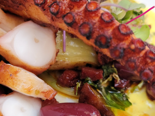 Great food! Grilled octopus was perfectly done. The pepperoni mixed in with it was an odd choice but worked well.