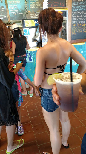 Today is the 4th of July...weather is spectacular. We waited 30 min and $30 to get into the parking lot. We found a spot on the beach once we got in....had burgers...fine...Caesar salad not great, piña colada not good, everything IS overpriced... this isnt a 5 star restaurant ...its a Beach hut....the live music is good and you come here for the ambiance...dance, drink beer (its cheaper & they cant mess it up)...everything else at your own risk. We love it.