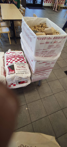 Ive been to many five guys around the country, this one is not as good. The fries are the best in most five guys but these just dont measure up! Burgers are ok nothing special.