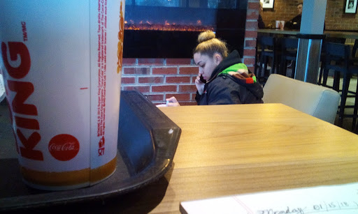An updated Burger King. It looks good, clean, and spacious. The added fireplace makes it less commercial looking.
