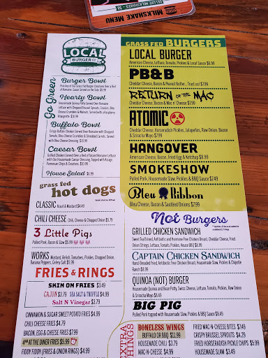We just returned from an enjoyable meal at Local Burger . After reading the reviews we were skeptical. I can happily say that the food was better than expected , every dish was unique in its own way. Well thought out and very tasty . We had a very personable server , Liz , and she was very helpful and patient. They have a soda counter with pressured seltzer, different flavor syrups and malteds , black and white malted on the board . The ambiance is perfect for their cuisine , its a modern hamburger joint. prices were quite reasonable , $ 25 for two meals , sides and drinks . Portions werent over sized , they were right on . Im over 200 # and can put it away and was happy . We will absolutely be returning and recommend it to anyone who can go there for what it is, simple ,innovative , friendly, reasonable and delicious .