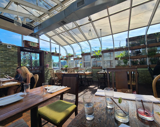 Review is based on a brunch experience. Bloody Marys and Marias (tequila instead) were tasty and a good size for brunch ($5). The biscuits with eggs had a sweet sauce that really made the dish. Starting off with a side of Guac was a great decision, tortillas were a bit too crunchy though. I personally really enjoyed the tacos, just a tad messy. Used the YELP deal which was a great incentive to come back. The place has a beautiful atmosphere with a green house out back. I didnt sit at one but inside I believe it was all high top tables. Not my fav for a nice night.