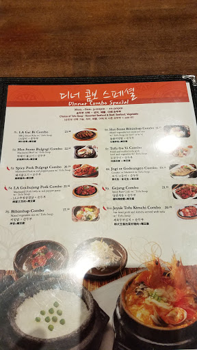 First thing I liked about this place is they have a parking lot. So its convenient to drive to. We got there early Sunday evening (4:15pm) so I had no trouble parking. By the time we left (5:15pm) the place was getting packed already. The wait staff was nice. We were seated right away. Food came out fairly quickly. What I like about trying different Korean restaurants is they always have different banchan, little side dishes that they serve before your food arrives. Uniquely this place give you a small scrumptious golden crispy fried fish. Honestly it was the perfect sized appetizer. Also different was the child mashed potatoes with raisins. My wife doesnt like raisins but it did add a nice sweetness to the potatoes that we liked. Whats also nice is that they will refill your banchan if you finish it, minus the fish. The tofu soup comes in varying levels of heat(spiciness). Plain, mild, regular, hot, and Danger. I opted for the hot mixed soup which came with sliced beef, 2 clams, a mussel, and a shell on shrimp. Soup also comes with a raw egg, which you can dump into the soup, and a side of white rice. When is served it comes in a piping hot bowl, the soup is still sizzling. It also stays hot for a long time. The flavor is to notch. Perfect Korean comfort food. The bibimbap was also good but only if you use the spicy paste to flavor it. Without it, its pretty bland. So unfortunately, if you cant eat spicy food I wouldnt recommend it. This is going to be my new go to spot for tofu soup. The next cold day you may be seeing me here.