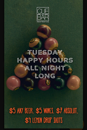 Its a nice pool hall but if something goes wrong with your credit card like Cue Bar giving your credit card to someone else, all hell will break lose. We had a terrible experience of that happening to us and Cue Bar handled it poorly. We will not be going back. Pay in cash when you can.